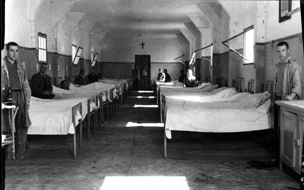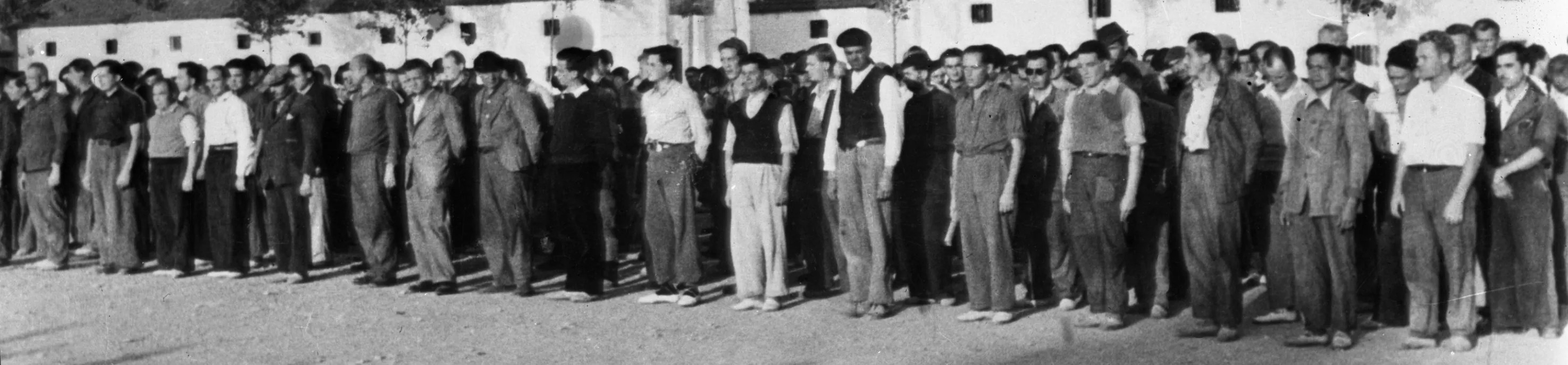 Les prisonniers vivent rassemblés par nationalité. Seules les ambassades – ainsi que la Croix-Rouge – sont autorisées à aider leurs ressortissants, que ce soit pour le quotidien ou leur éventuelle libération. Si bien que certains prisonniers ne reçoivent aucune aide, comme les Polonais ou les Français. Léon lui est avec les Anglais. Mais tous doivent chaque matin au moment de l’appel exécuter le salut fasciste à Franco. Et comme dans les autres camps, il y a la crasse, les puces, les rats, la faim, la soif, la chaleur excessive en été, le froid assassin en hiver.