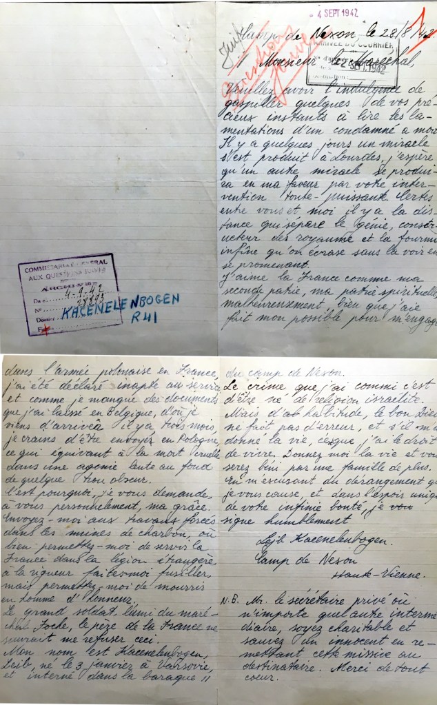 Léon Kacenelenbogen a écrit deux fois à Pétain. Ces deux lettres sont les seules traces dont je dispose pour découvrir ce qu’il lui est arrivé. Que nous apprennent-elles ?