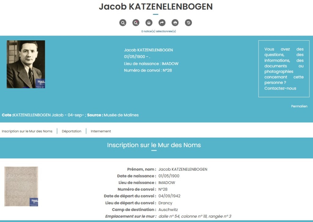 Jacob figure en effet sur les listes dressées par le Mémorial de la Shoah. Il a été déporté le 4 septembre 1942. Comment se fait-il arrêter ? Nous ignorons encore tout.