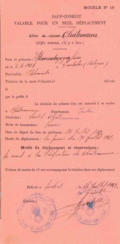 Et ensuite ? D’après le sauf-conduit, il se rend à Châteauroux le lendemain (peut-être a-t-il passé la nuit du 16 au 17 juillet dans les cellules de la gendarmerie de Loches). C’est là qu’il va connaître le sort que lui réserve la préfecture de l’Indre (alors dirigée par André Jacquemart).
