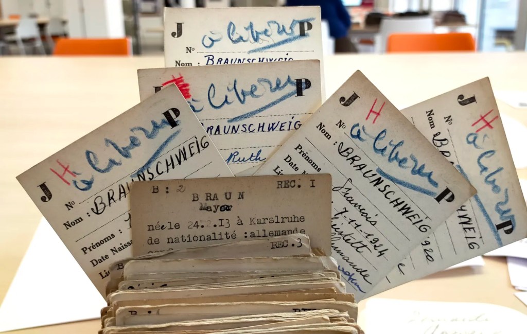 Les Archives départementales de la Haute-Vienne conservent les documents du camp de Nexon. Chez eux, je trouve une source capitale : les rangées de fiches individuelles de la commission de criblage qui décide du sort des étrangers détenus dans le camp.