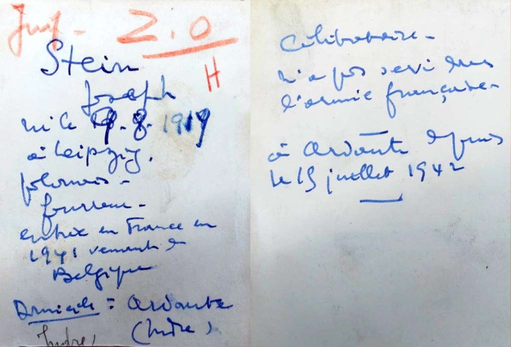 Sur la carte de Léon, on trouve une mention rouge : « ZO » ; sur la fiche de Joseph, le même « ZO » : ils sont destinés à être envoyés en zone occupée d’où ils seront déportés vers « ailleurs », le sort en est jeté. Oui, mais alors pourquoi se retrouvent-ils à Rivesaltes début septembre, au plus loin possible de la zone occupée ? Tout ça n’a aucun sens.