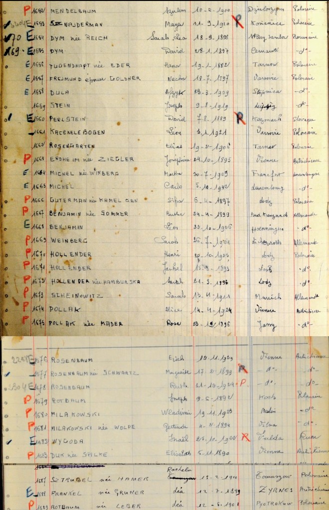 Sur place, on trouve plus : les registres d’arrivée du camp où Léon et Joseph sont listés avec leurs compagnons de Nexon. Près des noms de chacun, on trouve un soit « E » bleu ou un « P » rouge. « Parti », parti vers Drancy, parti vers la mort. « E » pour exempté. À côté des noms de Léon et Joseph, aucune mention n’est portée.