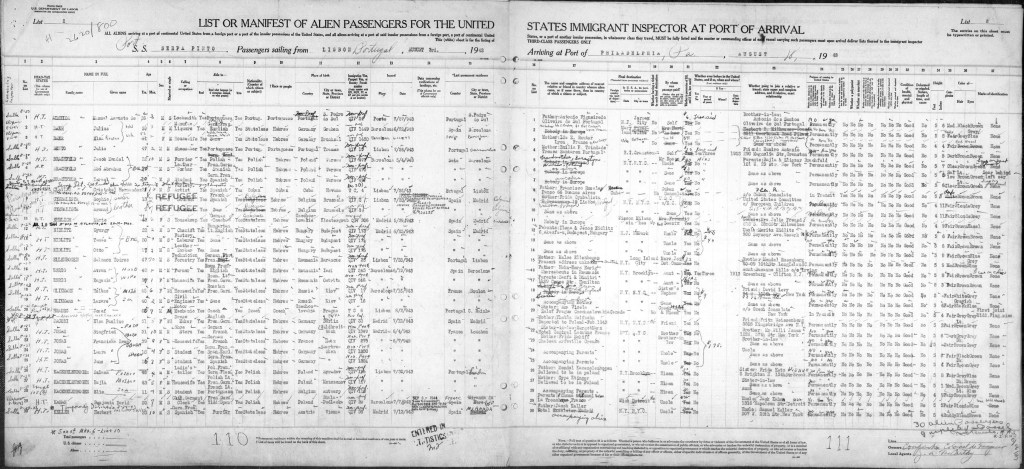 Les traces qu’on retrouve ensuite sont celles de leurs départs vers les États-Unis. Tout d’abord Anna, seule, à 15 ans, sur le Serpa Pinto. Puis le reste de la famille, neuf mois plus tard, en août 1943, toujours sur le Serpa Pinto, un véritable bateau de la liberté tant il fera de voyages entre Lisbonne et Philadelphie ces années-là, sauvant ainsi des milliers de vies.