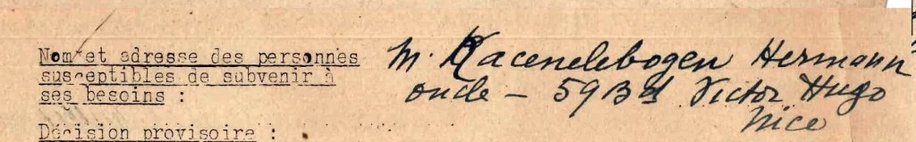16 juillet 1942 : c’est le jour de la première arrestation de Léon en France, dans un train en direction de Châteauroux, sur la ligne de démarcation. Dans le procès-verbal qui sera dressé par les gendarmes quelques heures plus tard, Léon déclare vouloir se rendre chez son oncle Hermann Kacenelenbogen, 59 boulevard Victor Hugo à Nice. Mais qui est cet oncle niçois ? Existe-t-il seulement ?